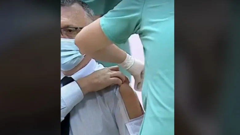 Ministrul Educației, Sorin Cîmpeanu, a apărut la vaccinare cu o cămașă specială, cu ”fereastră”