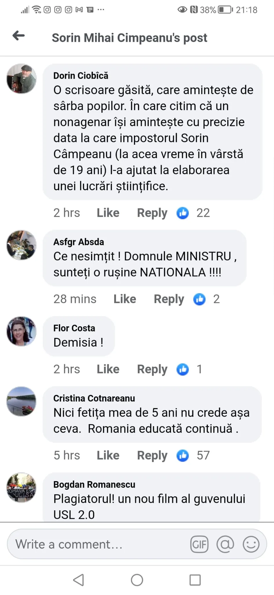 Mii de români îi scriu ministrului Educației, Sorin Cîmpeanu, pe Facebook, și îi cer demisia, după ce a fost prins cu un plagiat.