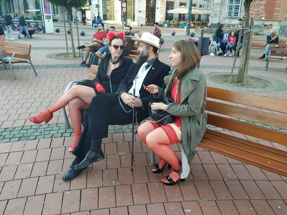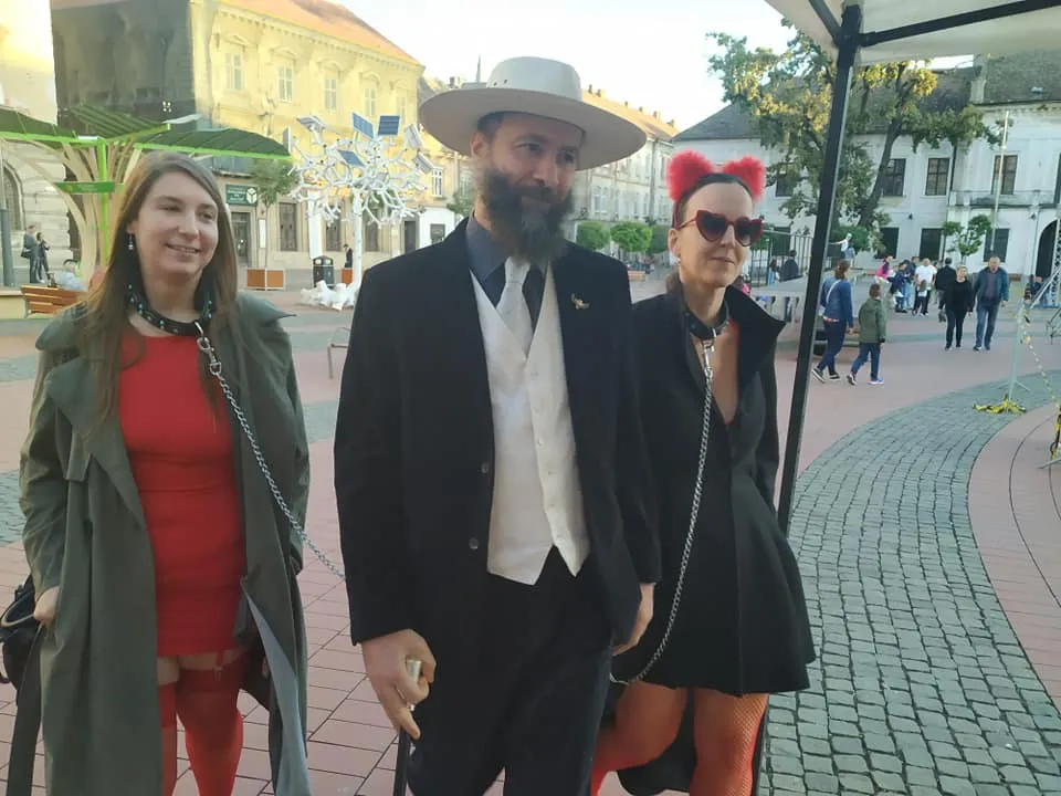 Mircea Popescu, romanul miliardar in Bitcoin, a plimbat două femei în lesă în Timișoara, în cursul zilei de sâmbătă, 21 septembrie 2019.