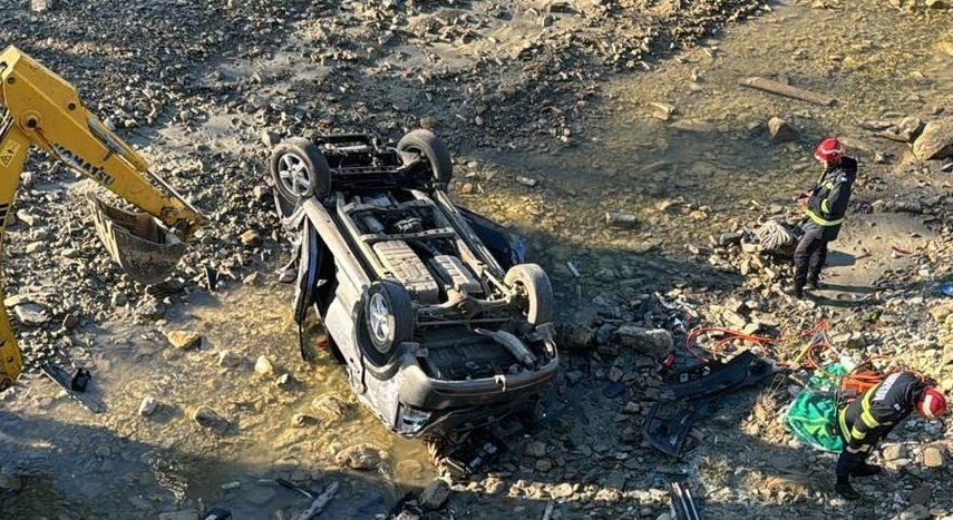 O fetiță de 9 ani a scăpat miraculos după ce mașina în care se afla a căzut de pe un pod. Șoferul s-a stins din viață în urma accidentului