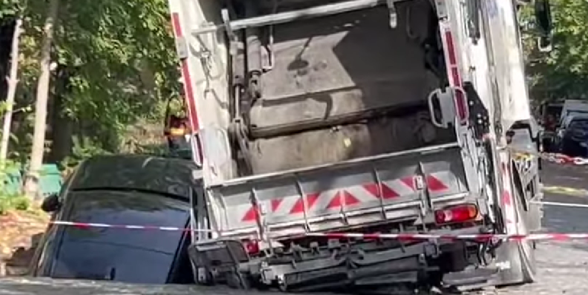 În imaginile apărute pe rețelele sociale, surprinse de la fața locului, se vede cum mașina este căzută aproape în totalitate în acel crater. De asemenea, o mașină de gunoi este scufundată parțial în această groapă, mai transmiste sursa menționată anterior.