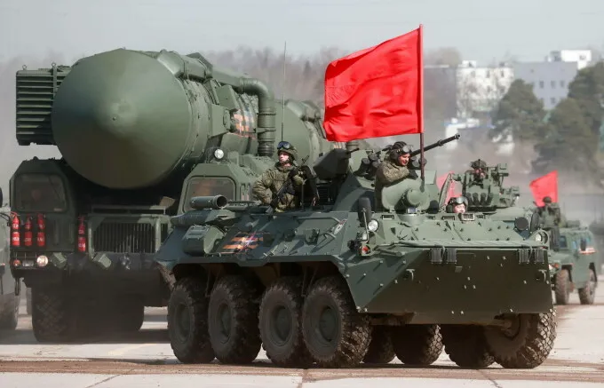 Printre soldați, tancuri și alte echipamente militare, racheta nucleară intercontinentală a fost cea care s-a remarcat la repetiții. A fost o demonstrație de forță și o reamintire a ceea ce este în joc, pe măsură ce tensiunile continuă să crească între Rusia și Occident.