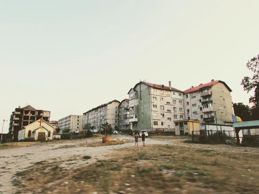 Un steag al UE, o gradinita la parterul unui bloc, o cârciuma numită pompos Restaurantul Faraon, jocuri electronice, un magazin la parter de bloc amintește ca aici trăiește o comunitate. Condițiile de trai sunt dure, apa curge o ora pe zi, amestecată cu mal, canalizarea e deficitara, încălzirea e pe lemne în sobe.