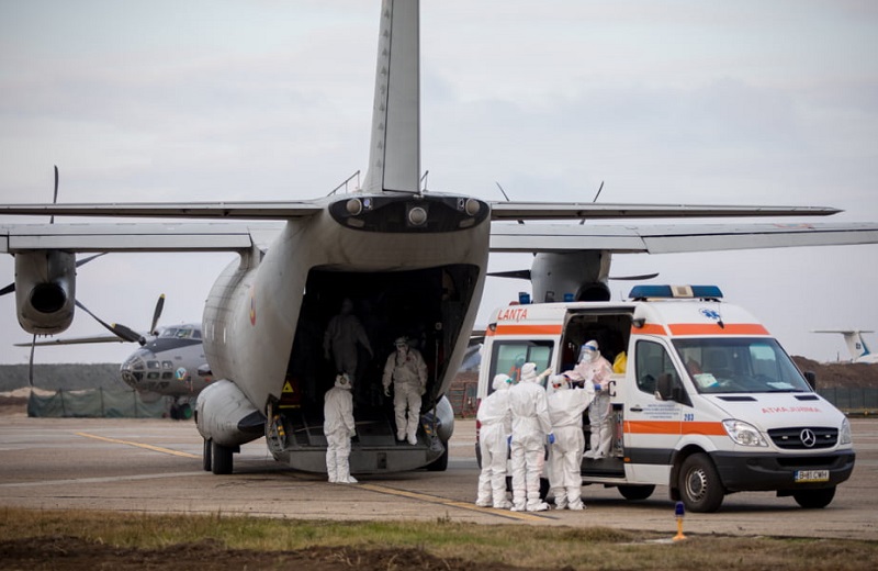 Transportul pacienților se realizează cu aeronave din dotarea Ministerului Apărării Naționale sau din dotarea Forțelor Aeriene Germane, conform unei decizii luată duminică de Comitetul Național pentru Situații de Urgență.