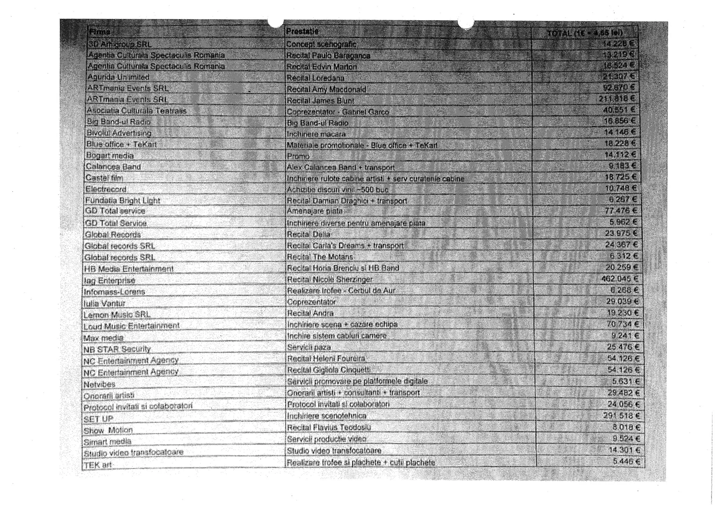 - Televiziunea publică plătește din banii contribuabililor sume uriașe invitaților permanenți și colaboratorilor care participă la emisiunea “Romania 9”, realizată de jurnalistul Ionuț Cristache (ianuarie-octombrie 2018: Ion Cristoiu - invitat 9.570 euro, Marius Pieleanu – invitat 8.097 euro, Radu Soviani - invitat 5.586 euro, Mircea Dinescu - invitat 15.149 euro, Cristian Gheorghe - invitat 8.774 euro).