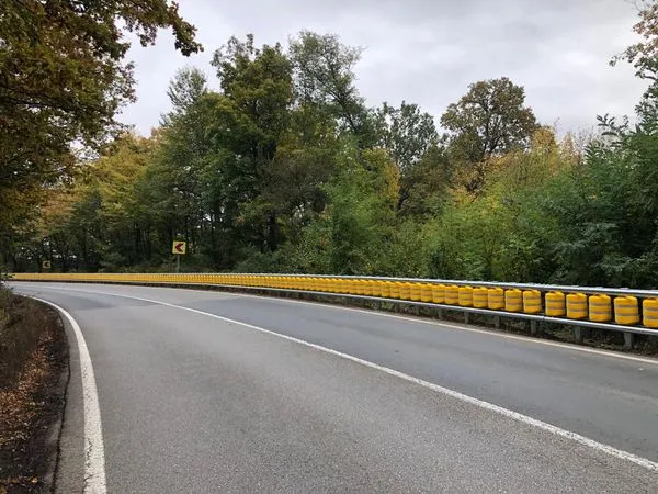 Aceste rulouri se rotesc în momentul impactului, iar autoturismul nu suferă un șoc similar cu cel la impactul cu un parapet metalic.