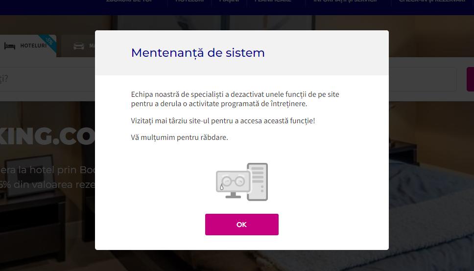 ,,Echipa noastră de specialiști a dezactivat unele funcții de pe site pentru a derula o activitate programată de întreținere.