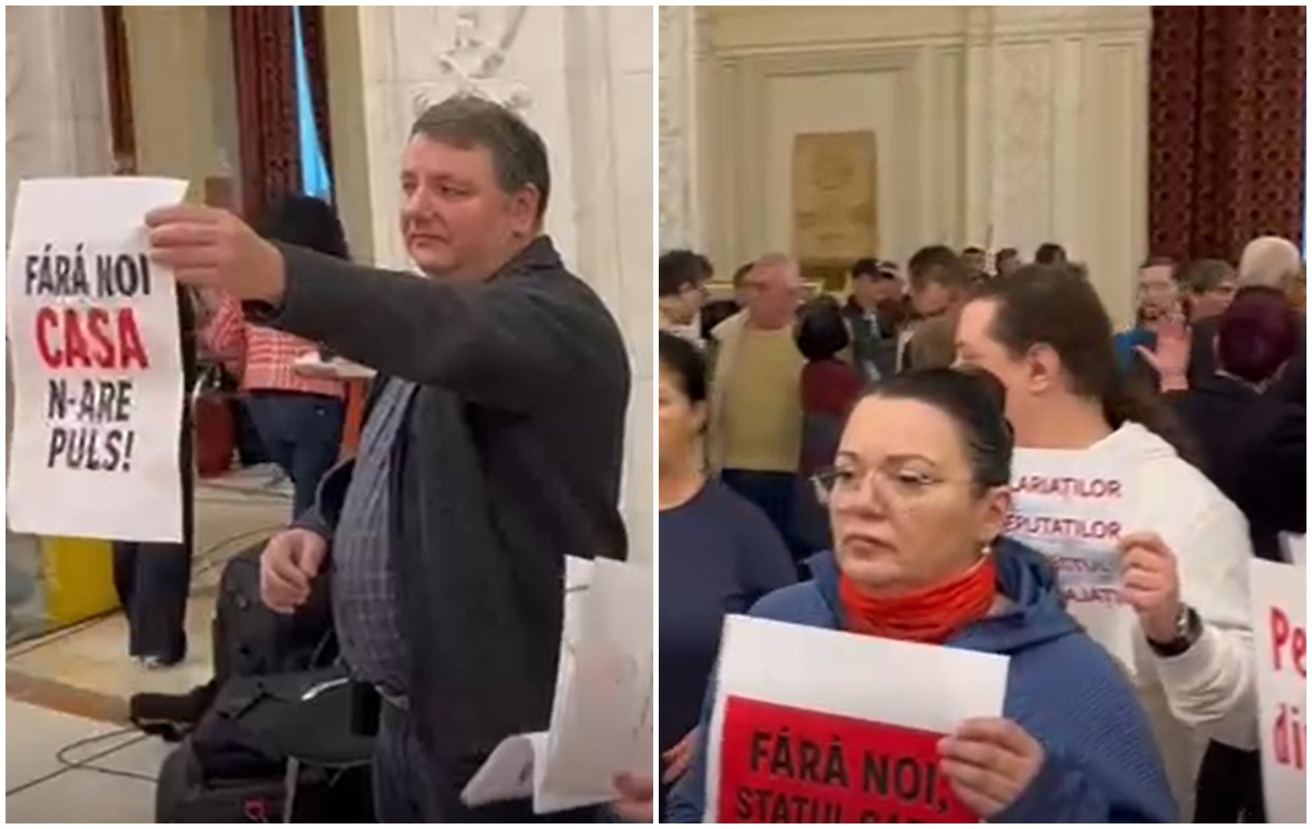 Zeci de angajați ai Parlamentului au declanșat, marți, un protest spontan pe holul din fața plenului Camerei Deputaților. Momentul a avut loc cu doar câteva minute înainte ca senatorii și deputații să intre în ședința comună programată la ora 13:00. Protestatarii au umplut holurile cu scandări puternice, „Vrem salarii decente!” și „Vă bateți joc de noi!”, iar intensitatea acestora a crescut atunci când în apropiere au apărut lideri ai Coaliției și miniștri, printre care Sorin Grindeanu.