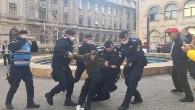 Bărbatul în cauză nu purta mască şi ar fi refuzat să se legitimeze. El a fost imobilizat şi târât spre dubă de 6-7 jandarmi, scrie Antena 3.
