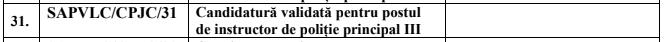 „La data de 13.07.2022, respectivului polițist i-a fost confirmată înscrierea la concursul organizat de Școala de Agenți de Poliție ‘Vasile Lascăr’ Câmpina, înscriere înregistrată cu nr. 64416/12.07.2022 și i-a fost atribuit codul de concurs ‘SAPVLC/CPJC/31’. La data de 02.08.2022, urmare a verificării îndeplinirii de către candidat a condițiilor de participare la concursul organizat, a fost validată candidatura pentru concurentul având codul de concurs ‘SAPVLC/CPJC/31’.