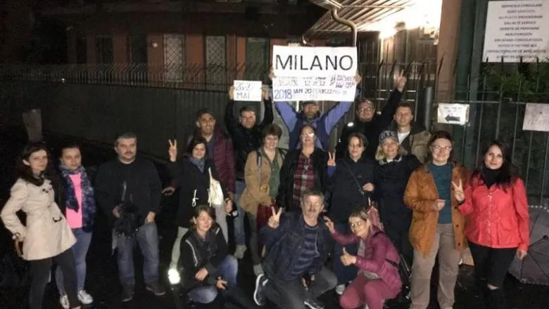 Circa 20 de români s-au reunit, luni seară, în fața Consulatului României din Milano, și au sărbătorit ”arestarea lui Liviu Dragnea”.