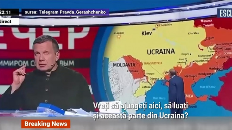 Rusia vrea să ajungă până în Transnistria, a declarat Vladimir Soloviov, principalul propagandist al Kremlinului, în cadrul unei emisiuni al unui jurnalist italian foarte cunoscut de la postul public Rai 1.