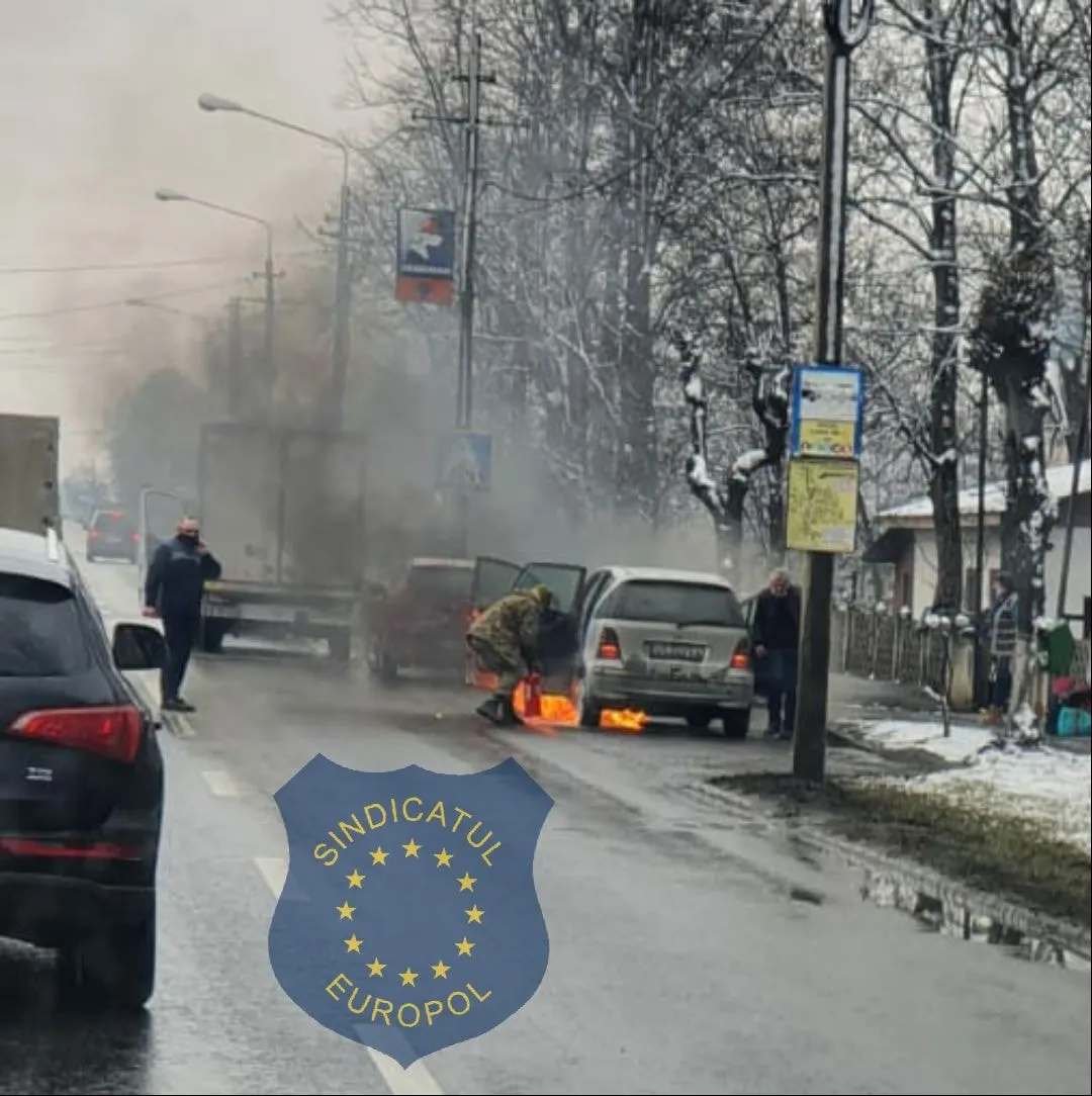 A observat o mașină care luase foc pe o stradă din Municipiul Roman, a intervenit imediat, a scos două persoane din autoturism, a blocat circulația, evitând astfel propagarea incendiului și la alte mașini.