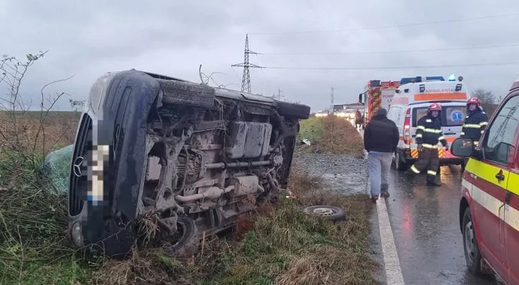 În eveniment au fost implicate un microbuz şi autoturism, înregistrându-se şapte victime, acestea fiind conştiente. Microbuzul s-a răsturnat în urma accidentului.
