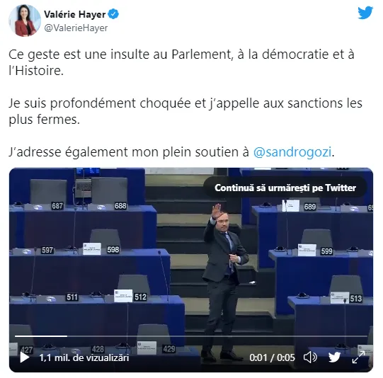 Vicepreședintele Parlamentului European, Pina Picierno, care a condus dezbaterea, a declarat că instituția va „verifica cu ajutorul camerelor de filmat ce s-a întâmplat în acel moment, pentru a vedea dacă există sau nu un salut fascist”.