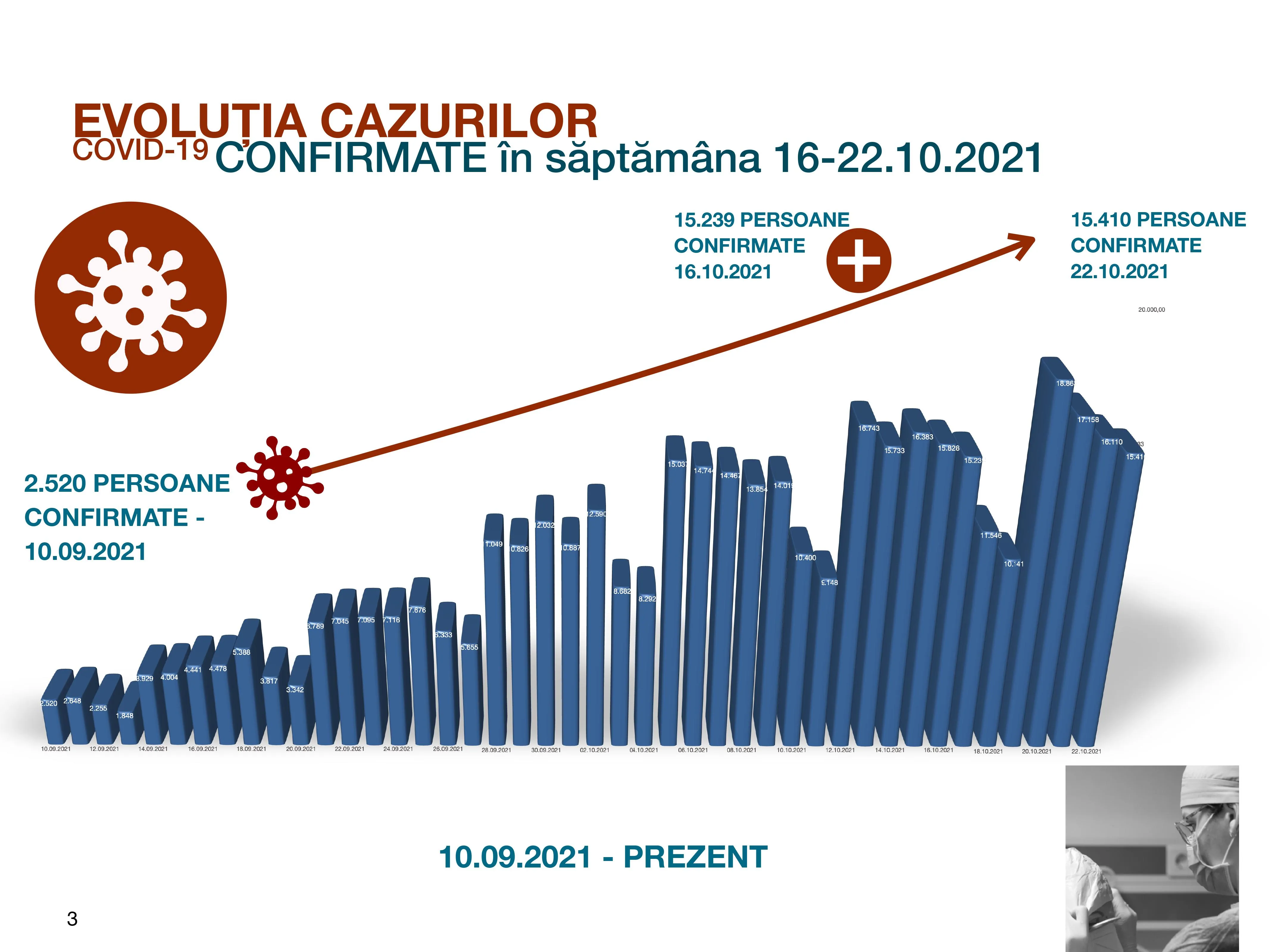 Departamentul pentru Situații de Urgență (DSU) a realizat o analiză a cazurilor COVID-19 pentru săptămâna 16-22 octombrie 2021. Datele arată că pandemia evoluează, iar cifrele pot fi consultate mai jos.