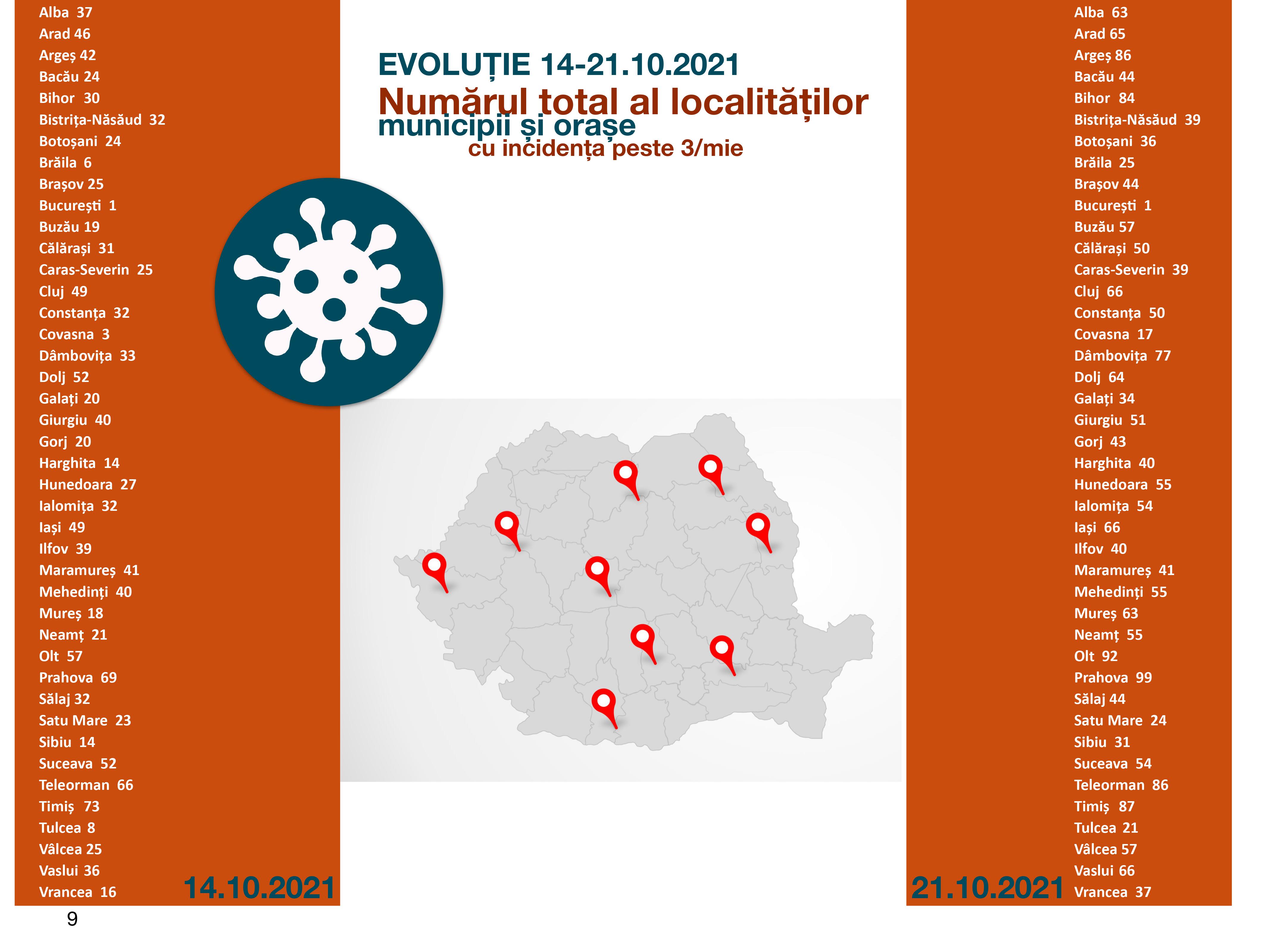 Departamentul pentru Situații de Urgență (DSU) a realizat o analiză a cazurilor COVID-19 pentru săptămâna 16-22 octombrie 2021. Datele arată că pandemia evoluează, iar cifrele pot fi consultate mai jos.