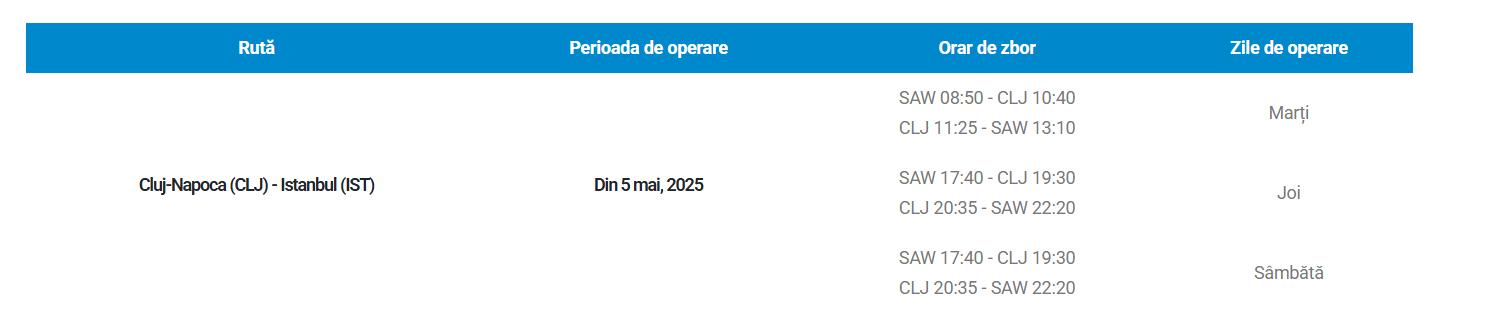Cluj-Napoca, 20 mai 2025 – Aeroportul Internațional Avram Iancu Cluj anunță lansarea unei noi rute directe spre Istanbul, în colaborare cu Pegasus Airlines. Noua rută va conecta Cluj-Napoca cu Aeroportul Internațional Sabiha Gökçen, situat în partea asiatică a Istanbulului, unul dintre cele mai importante aeroporturi din Turcia.