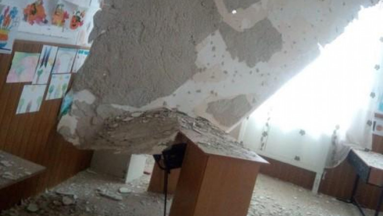 Tavanul unei școli recent renovată s-a PRĂBUȘIT peste bănci - FOTO