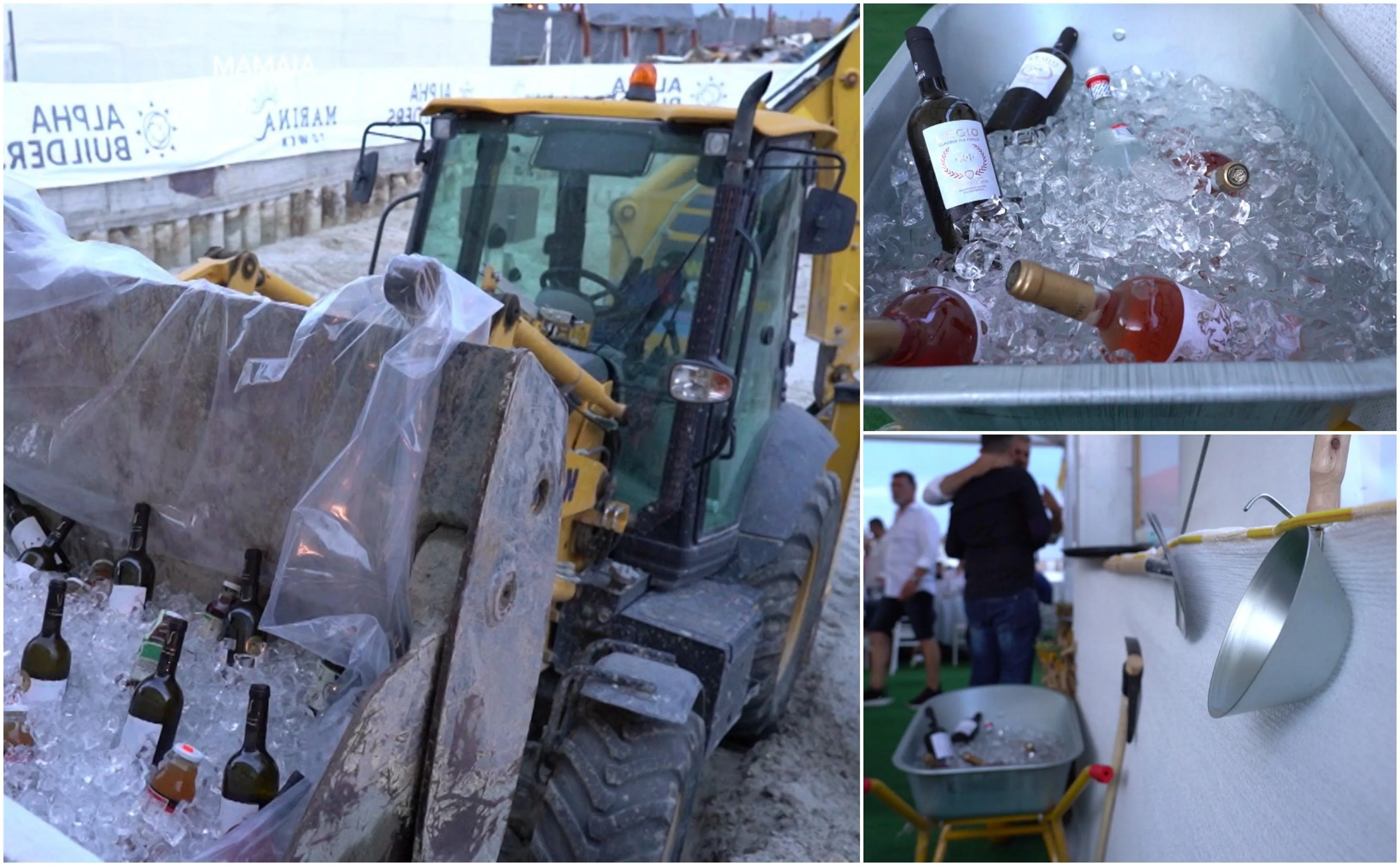 După distracţia de zi, la mare vine şi distracţia de noapte. În Mamaia, ultima modă e şampania servită direct din cuva excavatorului, iar locul petrecerii, un şantier transformat în restaurant, e foarte apreciat de clienţi. Roaba, canciocul sau lopata, sunt şi ele folosite de turişti.