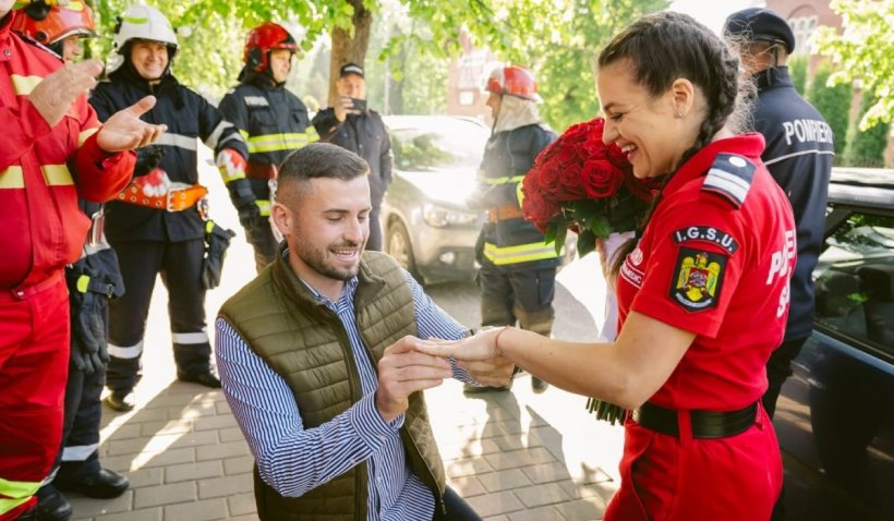 O tânără paramedic din Suceava a fost cerută în căsătorie, de ziua ei de naștere, după ce iubitul și colegii ei au înscenat un accident la intrarea în sediul ISU.