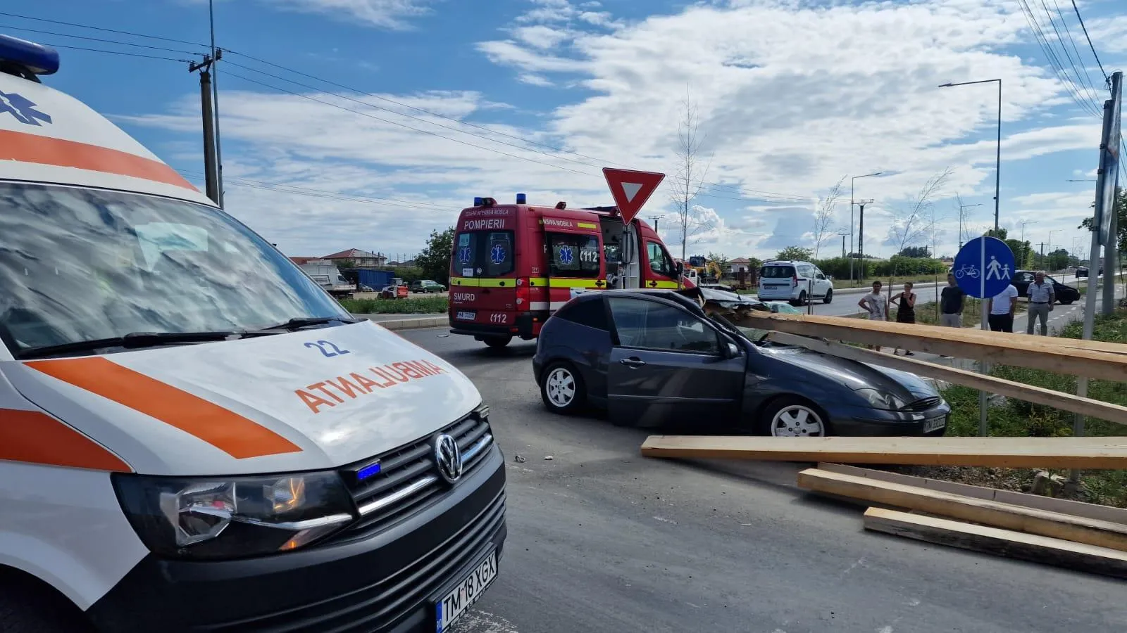 Un copil de 3 ani a ajuns la spital, după ce lemne au zburat dintr-o camionetă şi s-au înfipt în parbrizul maşinii în care se afla