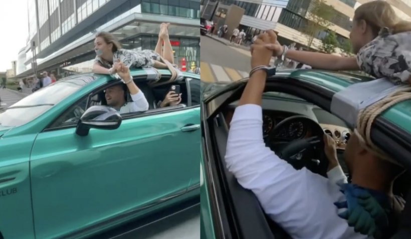 Un video cu un influencer din Rusia care conduce cu iubita legată cu frânghii de acoperişul maşinii, cu gura acoperită de o bandă adezivă face furori pe internet. Cei doi au mâinile legate cu cătușe, iar Sergey Kosenko se află la volan și conduce mașina pe drumuri publice.