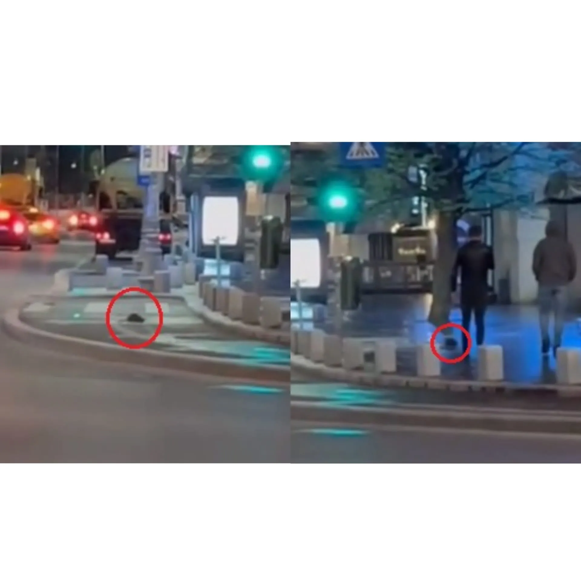 „Cât de mare e, zici că-i pisică. L-a omorât? Nu, Laurenţiu a supravieţuit”, se amuză bucureștenii care au filmat momentul. Șobolanul a fost filmat în timp ce traversa strada printre roțile mașinilor, ajuns pe trotuar, a făcut slalom printre picioarele trecătorilor.