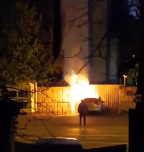 Un șofer a murit după ce a intrat în poarta Ambasadei Rusiei al București. Mașina a luat foc.