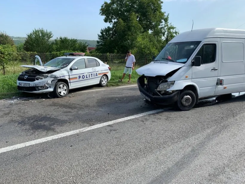 Se pare că șoferul dubei circula cu viteză, a văzut mașina Poliției, care venea din sens opus, a frânat brusc, probabil a presupus ca e un radar, și a derapat. A ajuns pe contrasens și s-a lovit chiar de autospeciala Poliției. Accidentul s-a soldat cu rănirea a doi polițiști din autospecială, în vârstă de 34, respectiv 44 de ani, care au fost preluați de ambulanță în vederea evaluării medicale și acordării îngrijirilor de specialitate, notează sursa citată.
