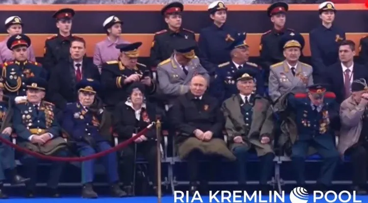 VIDEO. Dictatorul de la Moscova, învelit cu o pătură la parada militară din Piaţa Roşie. Ruşii au anulat şi Avionul Apocalipsei din cauza vremii