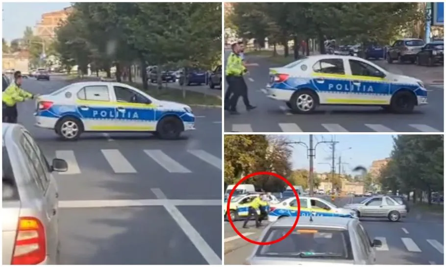 VIDEO. Doi poliţişti, filmaţi în timp ce împing o autospecială în mijlocul străzii. Val de reacţii în mediul online