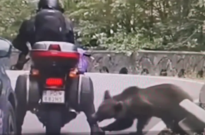 Scene uluitoare au fost surprinse pe Transfăgărășan, unde un urs a atacat un motociclist oprit în trafic. În imagini se vede cum animalul se apropie de turistul aflat pe motocicletă, îl prinde de picior, iar reacția motociclistului e uluitoare.