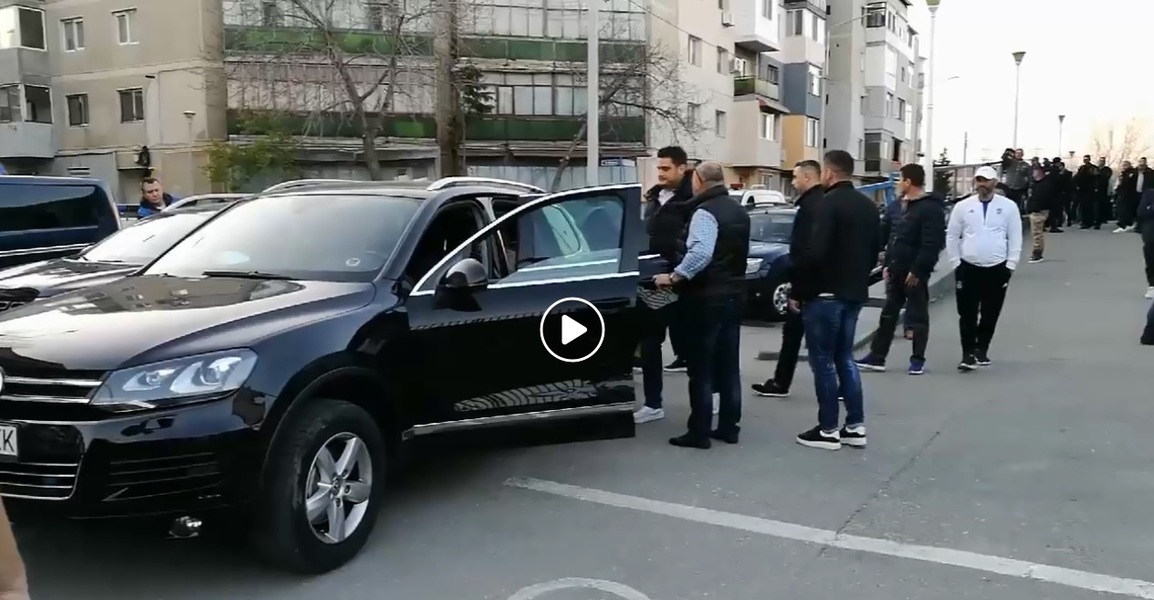 La plecarea de pe stadion, până să ajungă la mașină, Valentin Dragnea a fost huiduit de mulțime. Ceea ce surprinde, însă, este că are o escortă considerabilă. Tot timpul a fost însoțit de niște tineri bine făcuți, până când a urcat în mașină, un Volkswagen de culoare neagră care îl aștepta în dreptul unui loc de parcare pentru persoane cu dizabilități. După ce SUV-ul demarează, este urmat de încă două Dacii Duster de culoare neagră, dar și de o dubă a poliției.