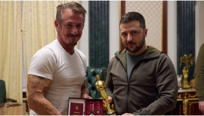 Actorul și regizorul, în vârstă de 62 de ani, este un susținător vocal al Ucrainei încă de la începutul războiului și acesta a fost a treia sa vizită la Kiev. Sean Penn s-a întâlnit cu președintele ucrainean Volodimir Zelenski și i-a înmânat premiul său Oscar, spunându-i să il restaureze după ce Ucraina va câștiga războiul.