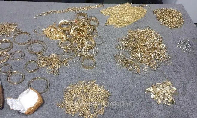 În total 5,015 kilograme de bijuterii, ascunse la motorul mașinii, în pachete bine închise. Pentru că șoferul nu avea documente de proveniență, întreaga cantitate de aur, în valoare de 1.254.000 lei, a fost confiscată.