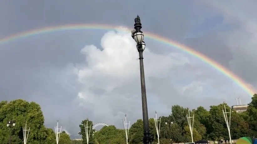Fenomenul impresionant a apărut pe cer la scurt timp după anunțul decesului Reginei Elisabeta a Marii Britanii. Imaginile cu dublul curcubeu au fost imediat distribuite pe rețelele de socializare, iar din clipuri se observă cum apariția neașteptată de pe cer a ridicat moralul celor care s-au adunat lângă palatul îndoliat.