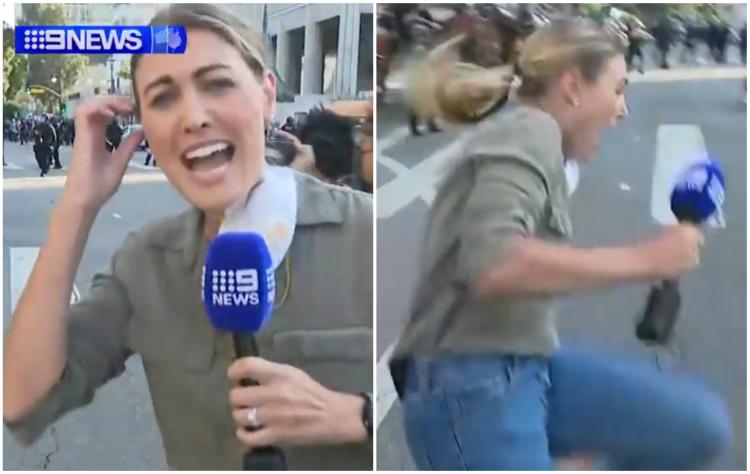 Chiar și așa, femeia a urlat de durere și a ajuns la spital pentru îngrijiri medicale. „Poliția din Los Angeles avansează călare, trăgând cu gloanțe de cauciuc spre protestatari, dirijându-i prin centrului orașului”, explica jurnalista înainte să fie lovită.