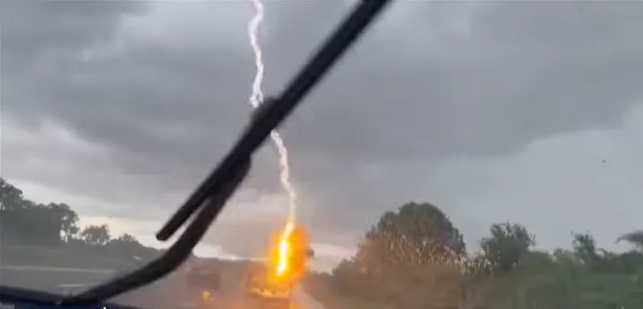 Totul s-a întâmplat pe o autostradă din statul american Florida. Femeia pornise camera cu intenția de a filma ploaia puternică ce i-a surprins în trafic. Într-o fracțiune de secundă, un fulger a izbit cu scântei mașina soțului, care conducea separat, în fața ei, împreună cu copiii lor.