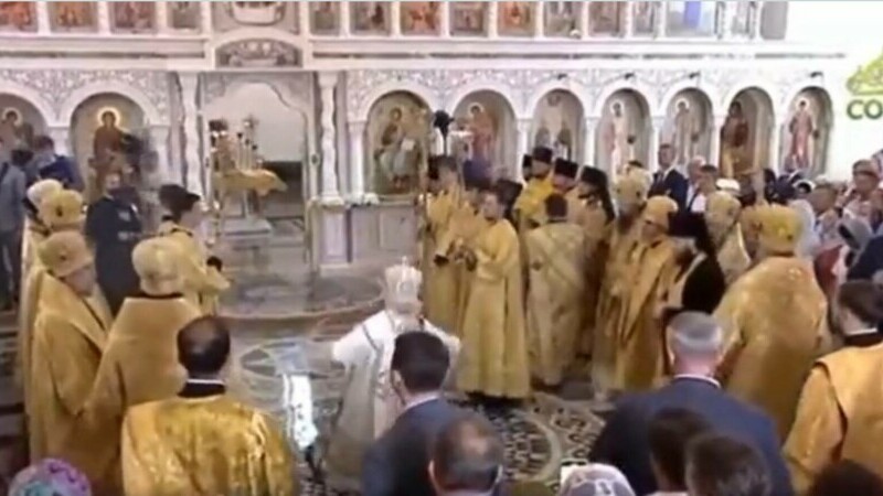 VIDEO - Patriarhul Kirill a căzut în timp ce sfințea o biserică. Nimeni nu a fost suficient de aproape pentru a-l prinde