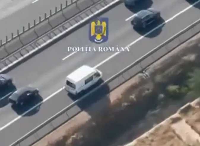 Poliția Română a surprins din elicopter un șofer de dubă care circula ilegal pe banda de urgență a autostrăzii, convins probabil că nimeni nu îl observă.