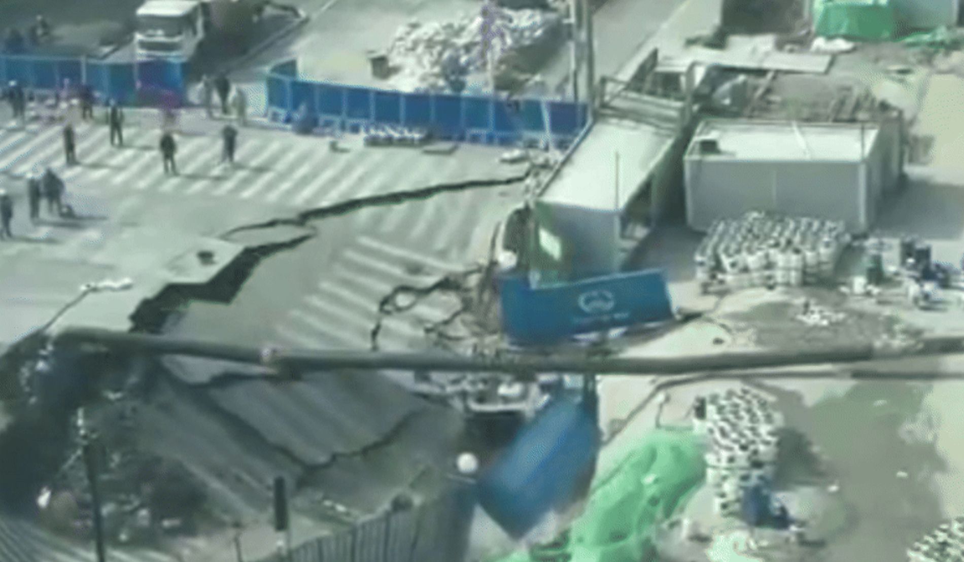 Potrivit informațiilor preliminare oferite de oficiali, surparea s-a produs în cursul dimineții, după ce structura subterană a solului a cedat. În craterul format au fost înghițite mai multe containere de construcții și utilaje grele aflate pe șantier. Imaginile apărute pe rețelele sociale arată o cavitate adâncă, cu marginile surpate și resturi de asfalt prăbușite în interior.
