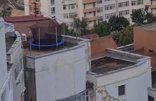 VIDEO. Trambulină pentru copii, montată pe acoperișul unui bloc cu 17 etaje: „Când au instalat această mini moarte?”