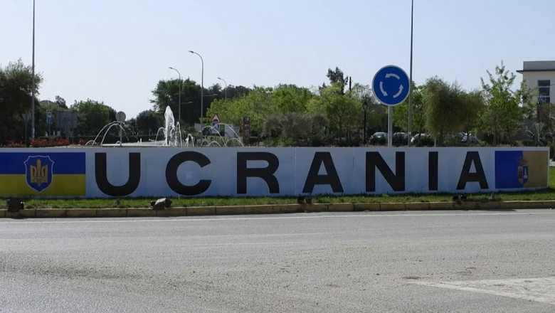 Pe o plăcuţă indicatoare aflată în sensul giratoriu de la intrarea în sat, Ucraina a înlocuit Fuentes de Andalucia, iar alături a fost pictat un steag albastru şi galben, scrie agerpres.ro.