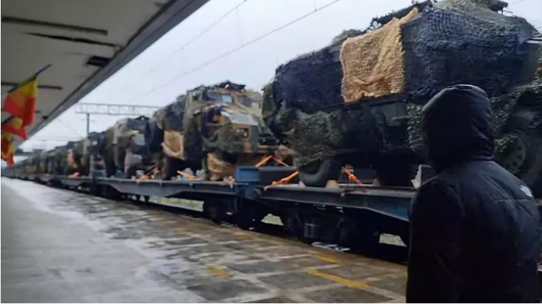 Potrivit relatărilor de pe rețelele de socializare, în România a fost văzut un tren care transporta 42 de vehicule blindate BMC Kirpi de fabricație turcă, destinate Forțelor Armate ale Ucrainei.