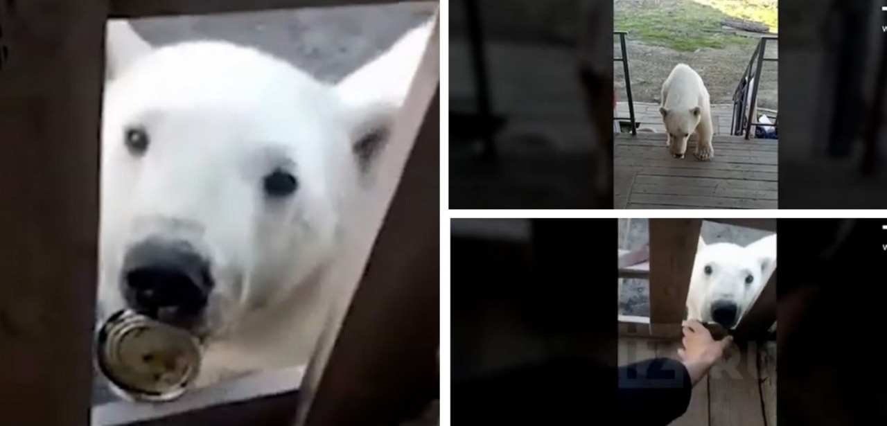 Un urs polar din Siberia şi-a prins limba într-o conservă de metal. În căutare de hrană, urşii polari au ajuns să caute prin gunoaie, iar unul dintre ei a fost la un pas de moarte după ce o conservă i-a rămas blocată în gură. Disperat, animalul a mers până la cea mai apropiată aşezare umană pentru a fi observat şi salvat.