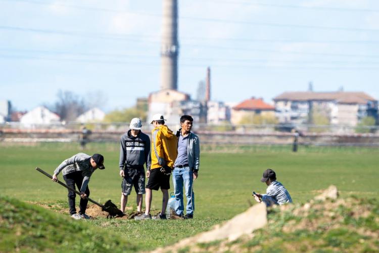 Un grup de vietnamezi, cel mai probabil muncitori la o fabrică din Timișoara, au fost filmați în timp ce săpau în oraș, pe un câmp și prindeau popândăi.