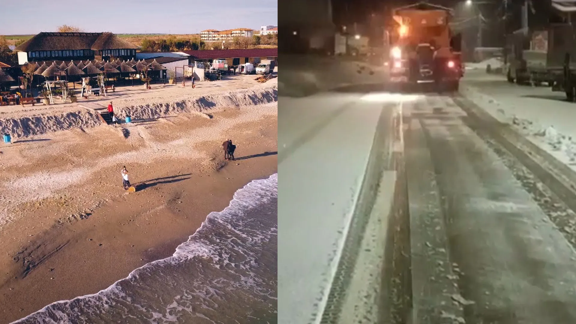 Vreme atipică pentru luna noiembrie: La munte a nins, iar la mare turiştii s-au plimbat pe plajă în mânecă scurtă