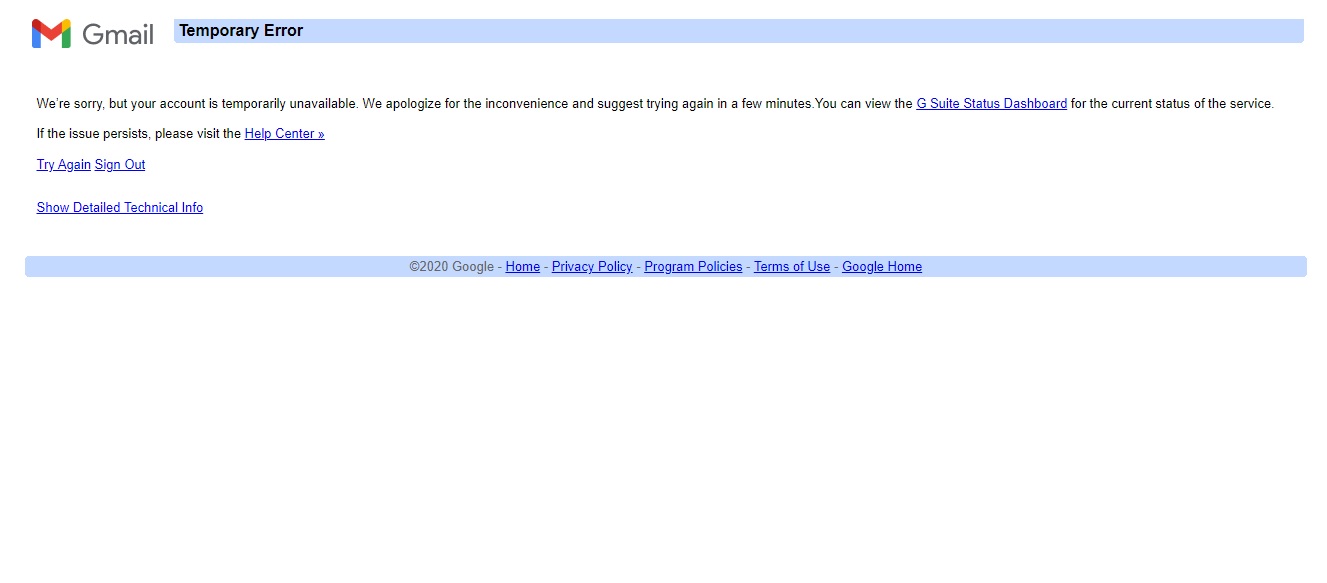 Utilizatorii Gmail primesc erori de tipul „We’re sorry but your account is temporarily unavailable”, iar YouTube anunță, de asemenea, că „Something went wrong”.