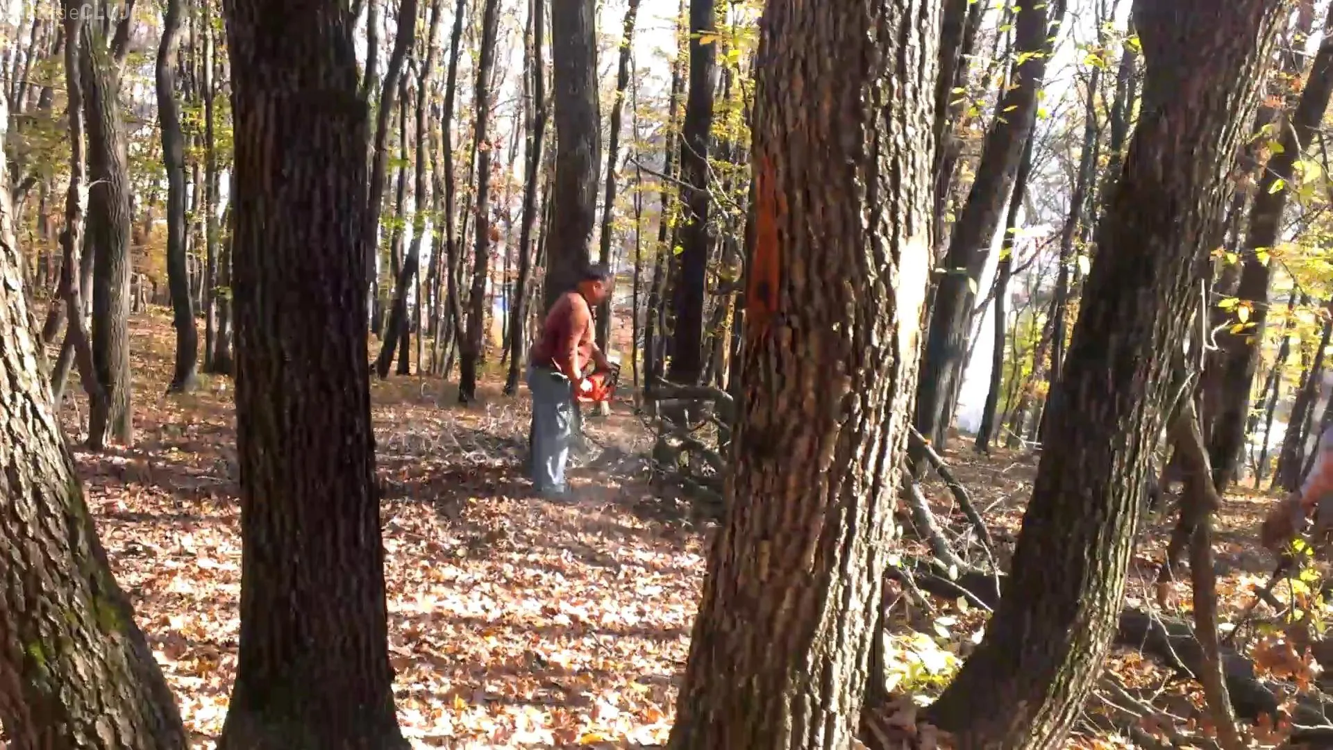 Erau doi indivizi probabil tată, fiu care tăiau copacii cu drujba. Aveau şi un tractor, cu nr. CJ-08-BMF.